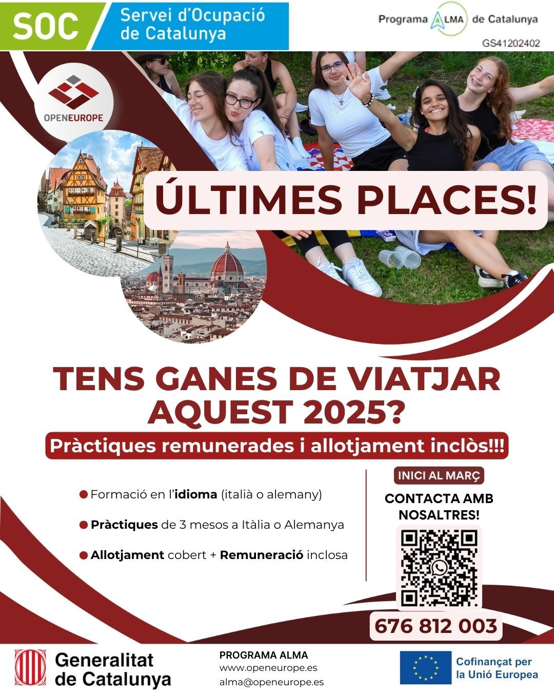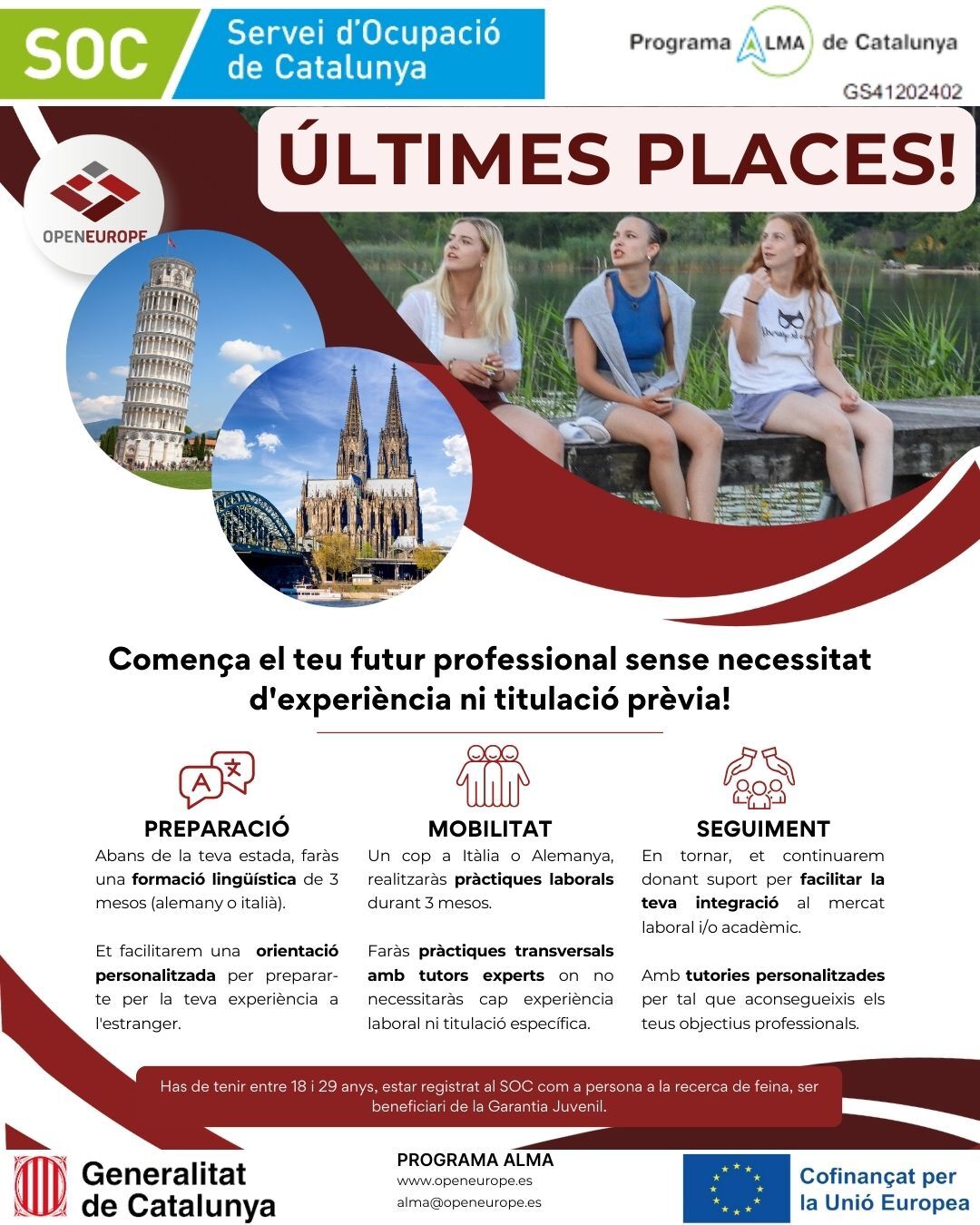 It is important that you are between 18 and 29 years old, be registered with the SOC as a person looking for work, and be a beneficiary of the Youth Guarantee.